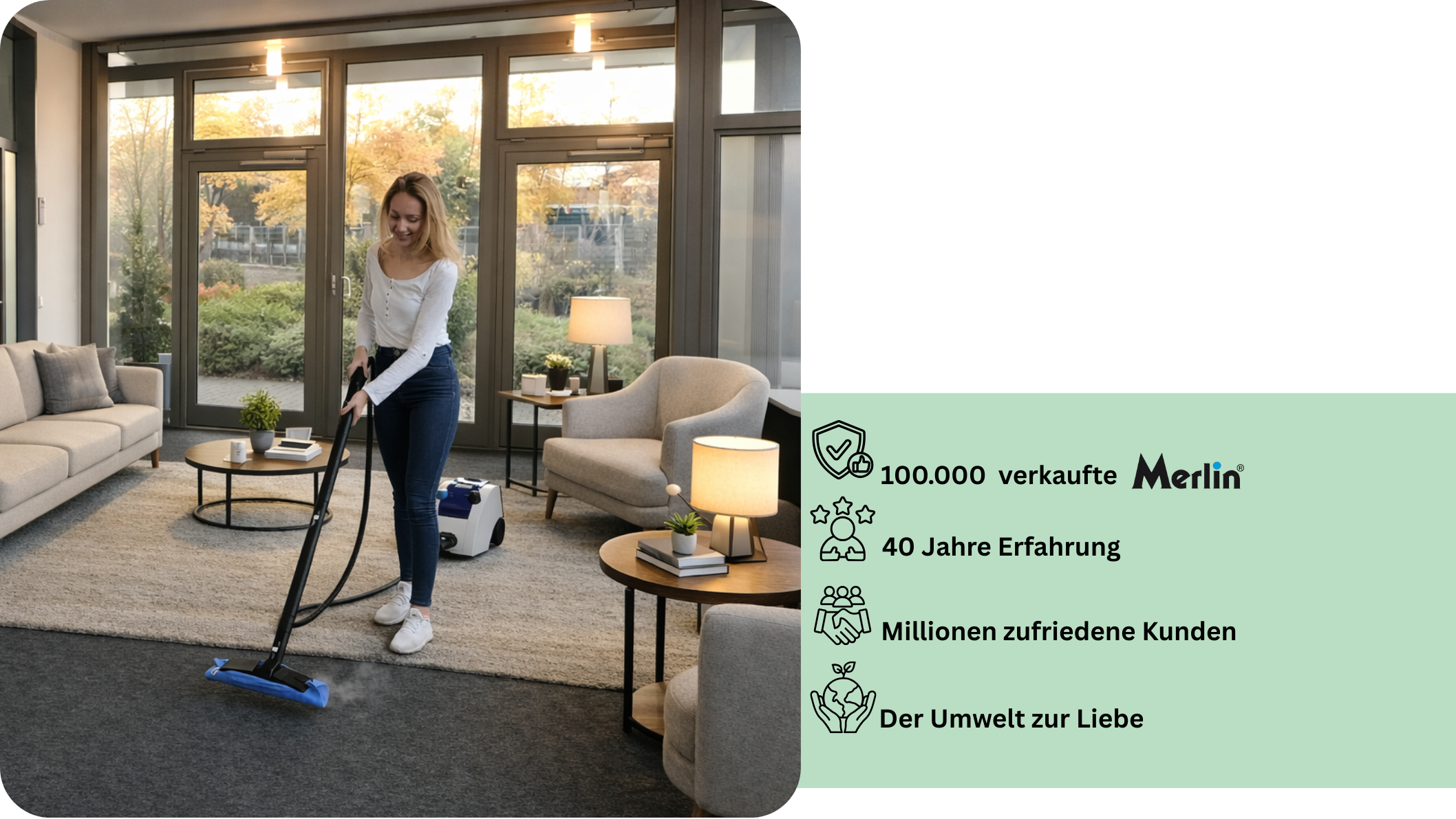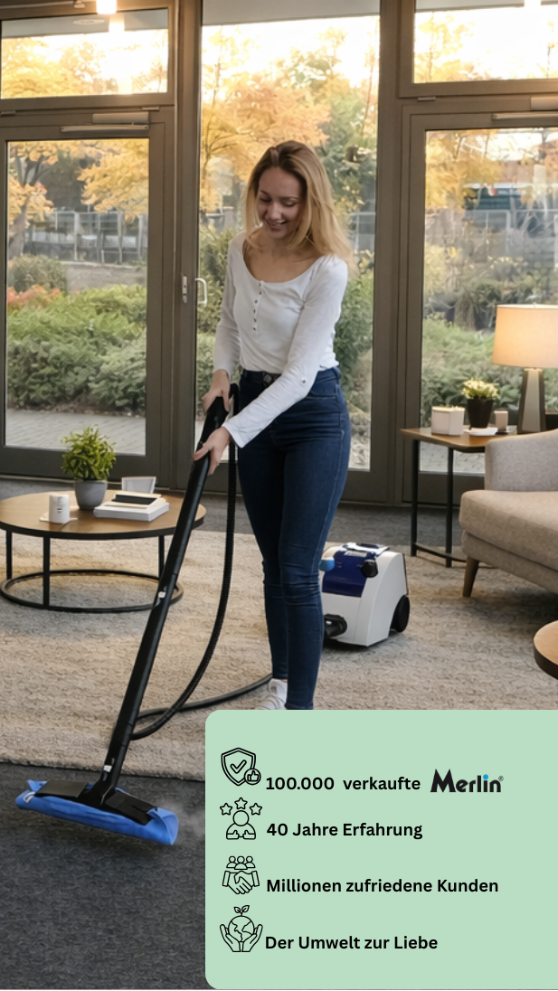 Der Merlin Dampfreiniger reinigt mit kraftvollem Heißdampf dort, wo andere Reiniger versagen.